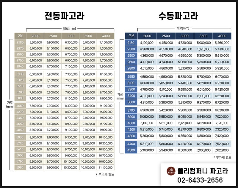 👇파고라 가격표 남겨드릴게요👇